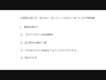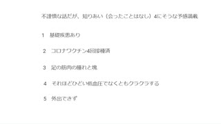 不謹慎な話だが知り合い(あったことはなし)4にそうな予感満載 50代 #同意なきワクチン殺人 #殺人ワクチン #毒ワクチン #ターボ癌 #ターボ脳出血 #疾患底上げワクチン