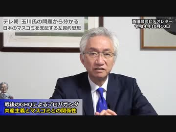 テレビ朝日の玉川発言問題、根幹にある拝金主義と批判理論!日本を分断する左翼的思想(西田昌司ビデオレター 令和4年10月10日)