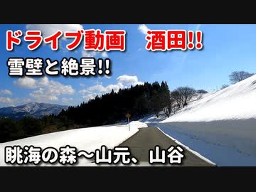 ドライブ動画 酒田 雪の壁!! 車載動画 田舎 眺海の森、山元、山谷 自然