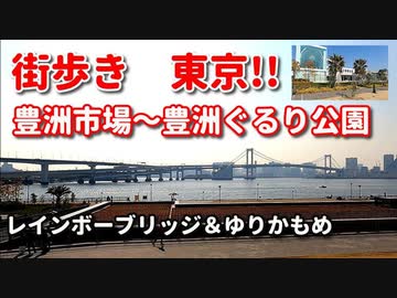街歩き 東京!! 豊洲市場~豊洲ぐるり公園!! レインボーブリッジ&ゆりかもめ