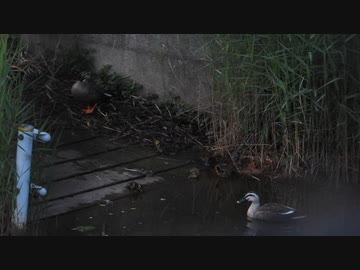 カルガモ親子が襲われる 父カモが交尾アピール