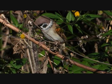 花とスズメ