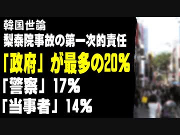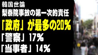 韓国世論、梨泰院事故の第一次的責任は「政府」が最多の20%、「警察」17%、「当事者」14%