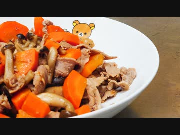【料理】長寿豚とぶなしめじ・ニンジンの即席の炒め物@AGFの上海オイスター醤油味で作る♪【Xperia 1 Ⅱ】