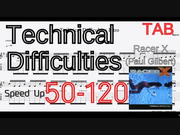 【Speed up TAB】Technical Difficulties Intro - Racer X(Paul Gilbert) ゆっくり練習【BPM50-120】