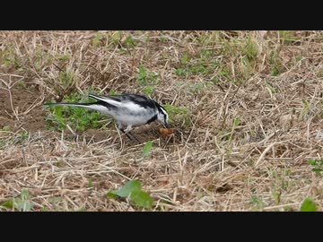 【鳥類の捕食シーン】ハクセキレイがケラを捕食