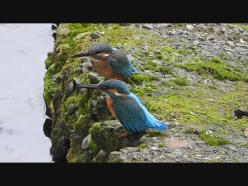 喧嘩で地面に激突したカワセミ