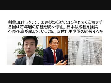 【脱医療洗脳】劇薬コロナワクチン、薬害認定追加111件広く公表せず 各国若年層の接種停止、日本は接種推奨 不良在庫が累積、利用期限延長