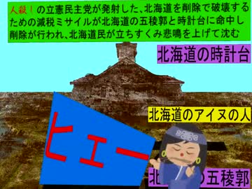 減税ミサイルが発射され爆発し削除が行われ地域の破壊が行われるアニメーション(2)北海道編