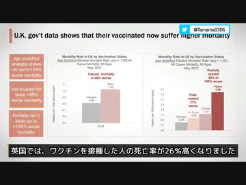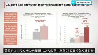 ロン・ジョンソン上院議員の会議より 英国政府がこの夏まで報告していたデータ分析 英国でコロナワクチンを接種した人の死亡率は26%高く、50歳以下で接種した人の死亡率は49%高かった