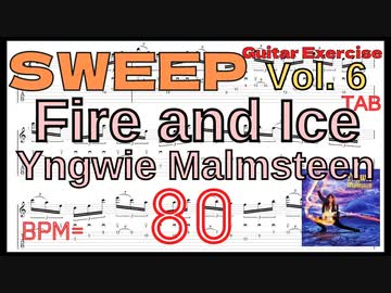 【TAB】Fire and Ice イントロ イングヴェイ・マルムスティーン スウィープ基礎練習 BPM80 【Guitar Sweep Training Vol.6】
