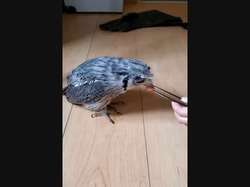 あかちゃんふくろう、えさを食べる