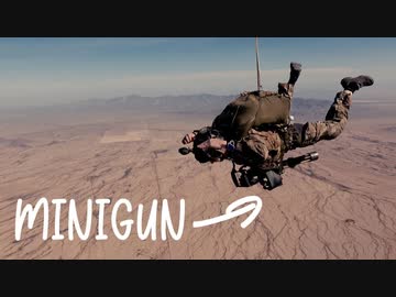 ミニガンと共に空挺降下する