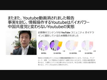 またまた、Youtube動画消されました報告 事実を封じ情報操作するYoutubeはバイオパワー 中国共産党と変わらないYoutubeの実態