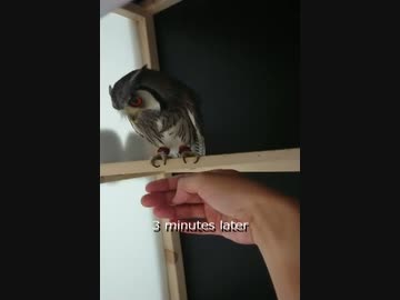 ふくろうさん、手に乗る練習