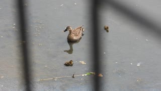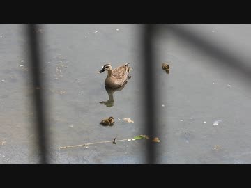 カルガモ親子がバンの鳴き声に反応