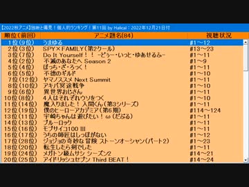 【アニメ雑談】『「2022秋アニメ」独断と偏見!個人的ランキング!』第11回
