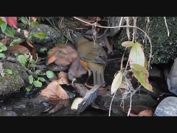 【鳥の捕食】冬の川で虫を探して食べるアカハラ