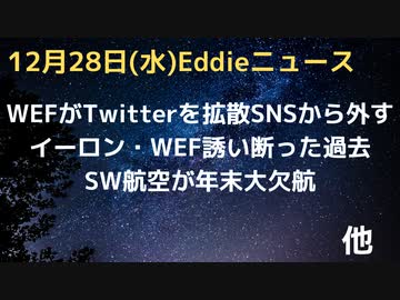 WEFが拡散希望SNSからTwitterを排除 イーロン過去にWEFヤンググローバルリーダーズ断る サウスウエスト航空がホリデーシーズンなのに大欠航、病欠理由ストの「シックアウト」か