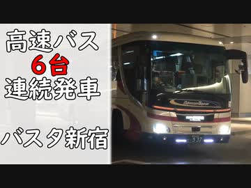 【バスタ新宿】高速バス6台連続発車 (アルピコ交通・しずてつジャストライン・東京空港交通・小田急バス・JR関東)