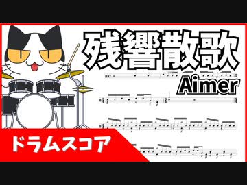 スマホで見やすいサイズ「残響散歌/Aimer」流れるドラム譜