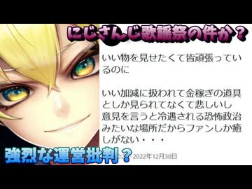 にじさんじライバーの中の人、魂垢で強烈な運営批判か!?