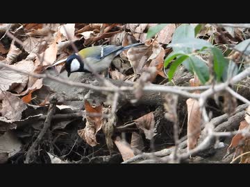 クモの卵を捕食するシジュウカラ