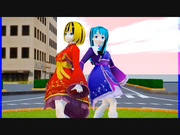 MMD、リン、ミク、計2人、で、Promise・オリジナル曲