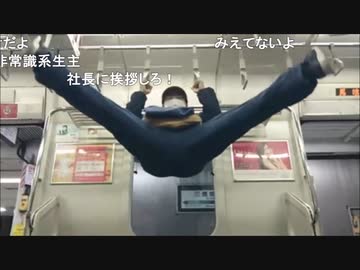 法金蔵 電車のつり革で遊ぶ