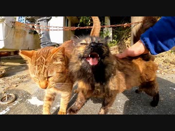 撫でられに割込んでくる野良猫がカワイイ