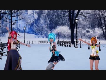【Ray-mmd】めんぼう式ミクとルカとリンが雪の公園でスノートリック
