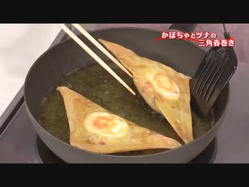 【3分クッキング逆再生】かぼちゃとツナの三角春巻き