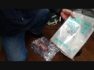 真空パック機フードシールド(JP290):真空袋 彊美人 [XS-2030] [厚70μ] を使ってみます。前回より少し真空が上手くなりました。
