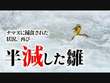 0607C③【1ヒナだけ…】雛を魚に捕食されたカルガモ親子がまた登れない…数も半分に。なぜ?【野鳥撮影の日記と観察、解説】みんなの動物園で引っ越し放送のカモの親子