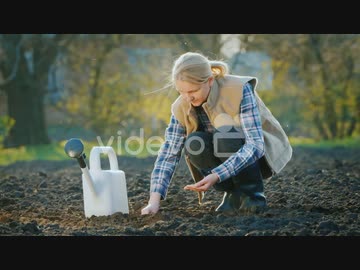 A Woman Farmer Planting Seeds In His Garden Spring Work 細川康孝
