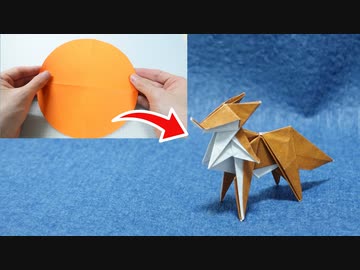 【折り紙】円形用紙から折るキツネの折り方