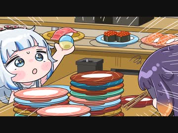 【手描き】回転寿司でガチャのために〇〇皿食べた、イナニスとぐら【一伊那尓栖/がうる・ぐら/ホロライブ切り抜き】【切り抜き漫画】