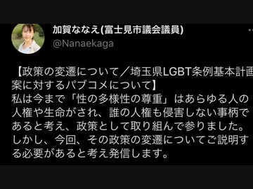 加賀ななえ市議会議員《性自認》【埼玉県富士見市議会/LGBT条例基本計画案について】
