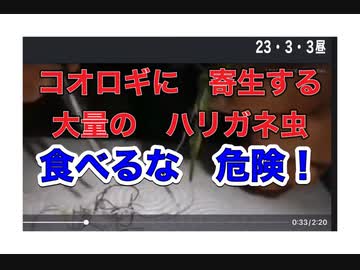 23/3/3昼 ぎゃ〜!コオロギ体内から大量の寄生虫が・・・。