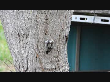 キツツキが木に穴を空ける瞬間