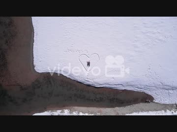 Couple Valentine's day, heart on snow by the lake 三好多加也