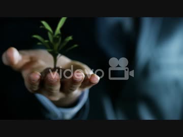 Hand holding seed sown in soft soil growing the cuttings and green leaves 安孫子佳典