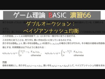 ゲーム理論BASIC 演習66 -ダブルオークション:ベイジアンナッシュ均衡
