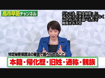 次期首相・高市早苗「国家機密に関わる人間にセキュリティクリアランス(適格性調査)を」