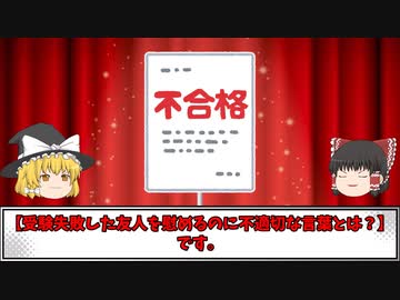 受験に落ちた友人を慰める「不適切な言葉」だそうです。【ゆっくり大喜利漫才】