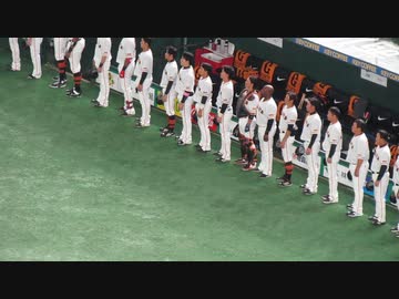 国歌演奏 ベンチ前へ並ぶジャイアンツ選手たち