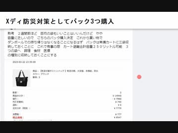 Xディ防災対策としてバック3つ購入