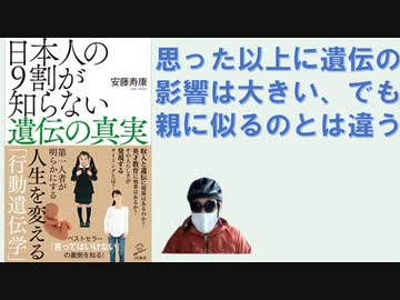 日本人の9割が知らない遺伝の真実 2020/09 by 安藤 寿康 (著)【アラ還・読書中毒】行動遺伝学、思っているより遺伝の影響は大きい。年を取るほど遺伝に落ち着いていく・・知能・収入・才能開花