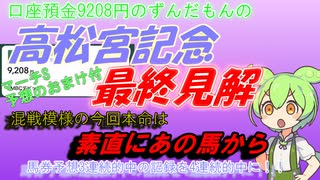 口座預金9208円のずんだもんの高松宮記念 予想