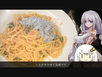 春野菜でしらすと明太子のクリームパスタ